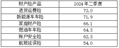 二季度對(duì)六類(lèi)常見(jiàn)財(cái)產(chǎn)保險(xiǎn)產(chǎn)品的消費(fèi)者購(gòu)買(mǎi)意愿調(diào)查顯示,退貨運(yùn)費(fèi)險(xiǎn)、新能源車(chē)車(chē)險(xiǎn)、家庭財(cái)產(chǎn)險(xiǎn)、燃油車(chē)車(chē)險(xiǎn)、賬戶(hù)安全險(xiǎn)、航班延誤險(xiǎn)等六類(lèi)保險(xiǎn)產(chǎn)品的購(gòu)買(mǎi)意愿指數(shù)大于50,處于意愿較積極區(qū)間,前三位分別是: