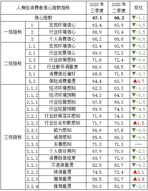 【指數成果】2023年三季度中國保險消費者信心指數66.9